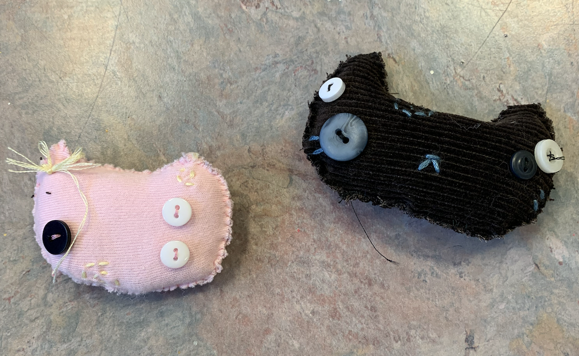 Potential ideas include embroidery art pieces, patches, embroidery on an item of clothing, small hand-sewn creatures, monsters or stuffed animals, visible mending on an item, or a series of clothing items