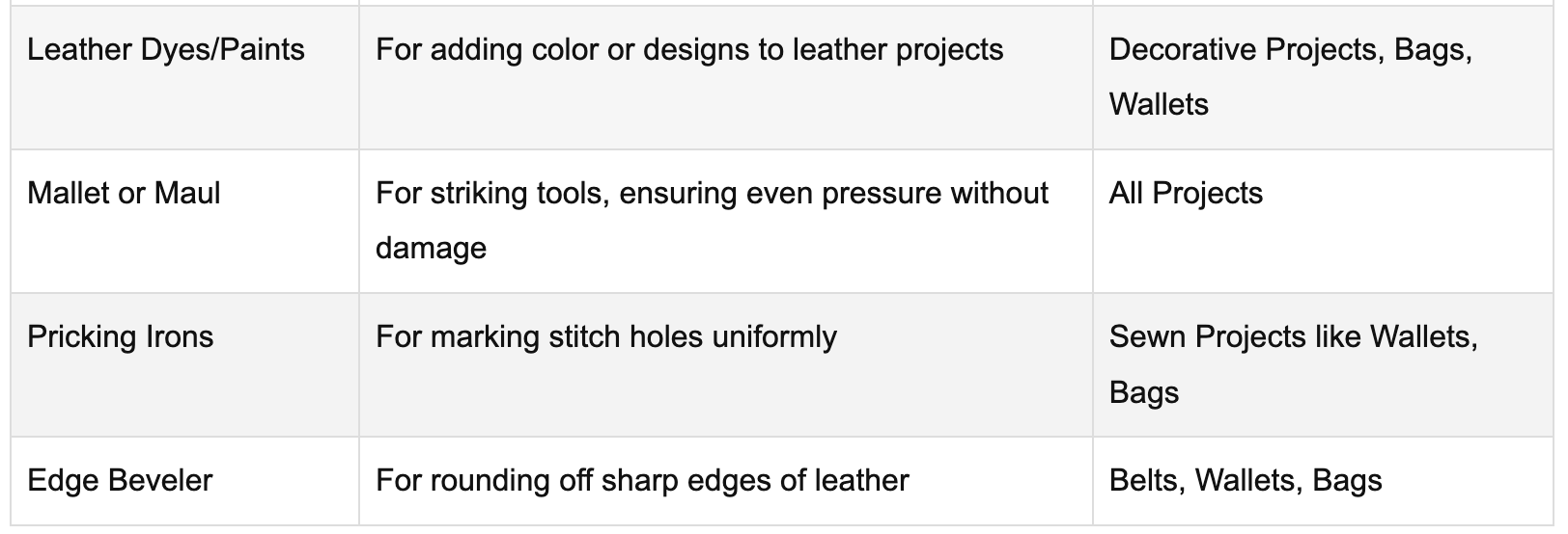 Tooling: This decorative technique involves creating designs on the leather's surface using specialized tools. Tooling can include carving, embossing, and stamping to add texture and visual interest.